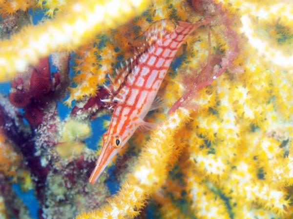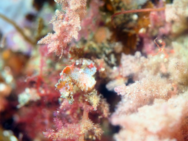 生き物はオオモンカエルアンコウ、イロカエルアンコウ、カエルアンコウ、ハチジョウタツ、オオウミウマ、ウミテング、カミソリウオ、クダゴンベ、フタイロハナゴイ、デイゴハナダイ、スジハナダイ、ネジリンボウ、ヒレナガネジリンボウ、ヒレナガカサゴ、インドアカタチ、ニゲミズチンアナゴ、ボブサンウミウシ、ミアミラウミウシ、トガリモエビ、ラオメネス・コルヌトゥス等の確認と情報がありました。
