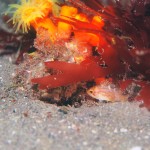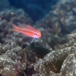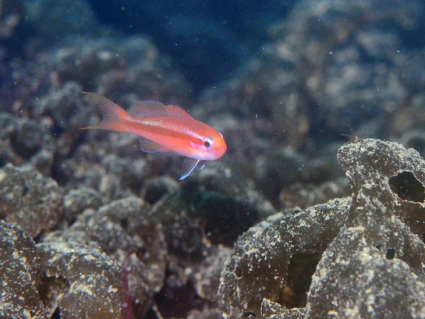 生き物はクマドリカエルアンコウ、オオモンカエルアンコウ、イロカエルアンコウ、カエルアンコウ、ハチジョウタツ、ウミテング、ミジンベニハゼ、ミホノハゴロモハゼ、ヒレナガネジリンボウ、フタイロハナゴイ、スミツキハナダイ、ヒメハナダイ、オガサワラカサゴ、ヒレナガカサゴ、ジョーフィッシュsp、ウサギトラギス、ニゲミズチンアナゴ、ツノザヤウミウシ、カンナツノザヤウミウシ、ウデフリツノザヤウミウシ、クサモチアメフラシ、トガリモエビ、ヨコシマエビ等の確認と情報がありました。
