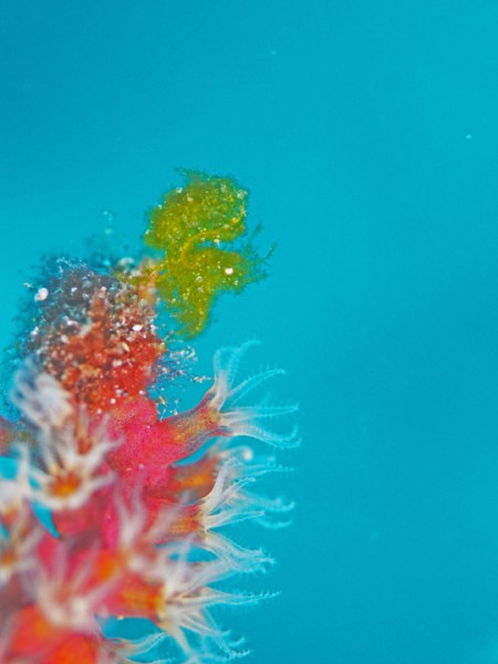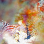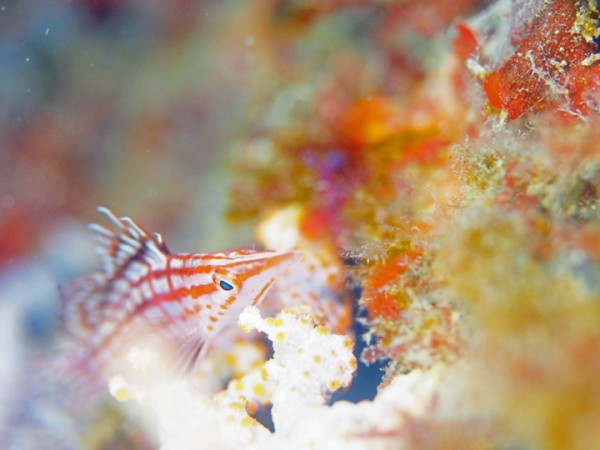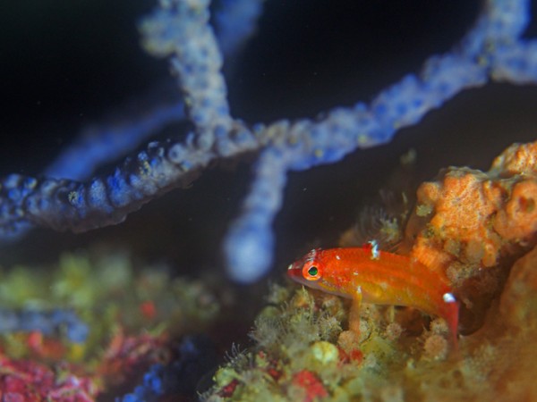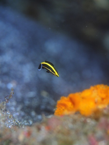 生き物はクマドリカエルアンコウ、オオモンカエルアンコウ、イロカエルアンコウ、ベニカエルアンコウ、カエルアンコウ、ハチジョウタツ、オオウミウマ、ミジンベニハゼ、ネジリンボウ、ヒレナガネジリンボウ、ミホノハゴロモハゼ、ツバメクサハゼ、スミレナガハナダイ、デイゴハナダイ、ムラモミジハナダイ、シマキツネベラ幼魚、スミツキアカタチ、イッテンアカタチ、ツノザヤウミウシ、カンナツノザヤウミウシ、ウデフリツノザヤウミウシ、サガミリュウグウウミウシ、トサカリュウグウウミウシ、セトリュウグウウミウシ、トガリモエビ、エボシカクレエビsp、フィコカリス・シムランス等の確認と情報がありました。