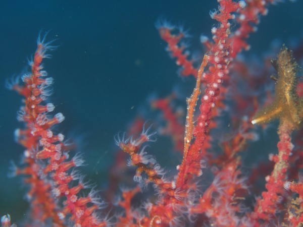 生物はクマドリカエルアンコウ、イロカエルアンコウ、オオモンカエルアンコウ、カエルアンコウ、ヒレナガネジリンボウ、ネジリンボウ、ミホノハゴロモハゼ、ゲッコウスズメダイ幼魚、ハダカハオコゼ、マツカサウオ、イッテンアカタチ、アゴアマダイ属未同定種、ニシキフウライウオ、カミソリウオ、カンナツノザヤウミウシ、ツノザヤウミウシ、コソデウミウシ、フジタウミウシ属の一種、オオアリモウミウシ、エボシカクレエビ、フィコカリス・シムランス、ヒラツノモエビ等確認と情報がありました。