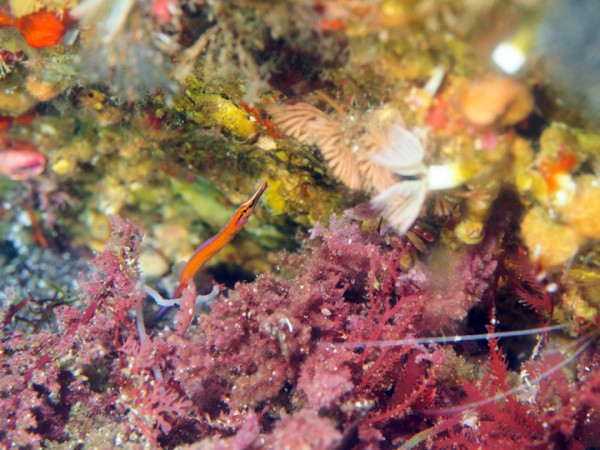 生き物はオオモンカエルアンコウ、イロカエルアンコウ、ベニカエルアンコウ、カエルアンコウ、ハチジョウタツ、ウミテング、ダイダイヨウジ、クダゴンベ、ミジンベニハゼ、ヒレナガネジリンボウ、ミホノハゴロモハゼ、フタイロハナゴイ、ホカケハナダイ、スミツキハナダイ、デイゴハナダイ、キンギョハナダイ色彩変異、スミレナガハナダイ、ベニハナダイ、ヒレナガカサゴ、オガサワラカサゴ、ニゲミズチンアナゴ、ジョーフィッシュsp、カンナツノザヤウミウシ、ボブサウミウシ、クサモチアメフラシ、トガリモエビ、ラオメネス・コルヌトゥス、ヒメキンチャクガニ等の確認と情報がありました。