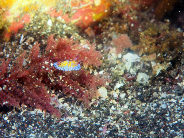 今日の天候は晴れ。風は南西の風が午後からやや吹きましたが全ポイント潜水可能でした。水温は18~19℃、透視度は5~12mで白濁感がややあります。