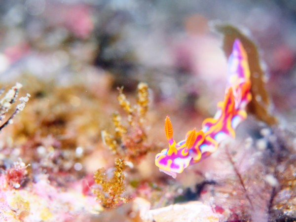 生き物はオオモンカエルアンコウ、イロカエルアンコウ、ベニカエルアンコウ、カエルアンコウ、ハチジョウタツ、オオウミウマ、クダゴンベ、スミレナガハナダイ、ベニハナダイ、フタイロハナゴイ、スミツキハナダイ、ヒメハナダイ、ネジリンボウ、ヒレナガネジリンボウ、キザクラハゼ、ナノハナフブキハゼ、オガサワラカサゴ、ヒレナガカサゴ、テングダイ、ルリハタ、ハダカハオコゼ、ニゲミズチンアナゴ、インドアカタチ、ウデフリツノザヤウミウシ、ボブサンウミウシ、ミアミラウミウシ、オセザキホクヨウウミウシ、トガリモエビ、キサンゴカクレエビ等の確認と情報がありました。