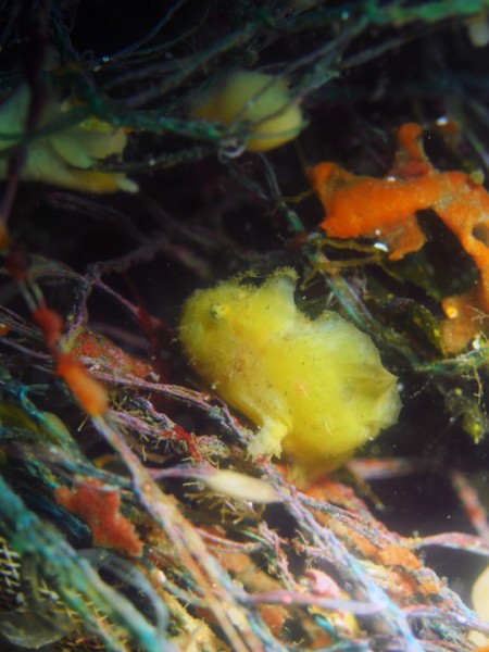 生き物はオオモンカエルアンコウ、イロカエルアンコウ、ベニカエルアンコウ、カエルアンコウ、ハチジョウタツ、オオウミウマ、カミソリウオ、ウミテング、ネジリンボウ、ヒレナガネジリンボウ、オニハゼsp、クダゴンベ、デイゴハナダイ、ムラモミジハナダイ、チンアナゴ、ニゲミズチンアナゴ、シマヒメヤマノカミ幼魚、カスザメ、サカタザメ、オトヒメウミウシ、ミアミラウミウシ、クサモチアメフラシ、トガリモエビ、ラオメネス・コルヌトゥス等の確認と情報がありました。