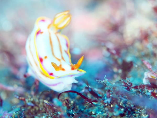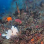 生き物はオオモンカエルアンコウ、イロカエルアンコウ、ベニカエルアンコウ、カエルアンコウ、ハチジョウタツ、オオウミウマ、ウミテング、カミソリウオ、ネジリンボウ、ヒレナガネジリンボウ、ミホノハゴロモハゼ、フタイロハナゴイ、デイゴハナダイ、ムラモミジハナダイ、クダゴンベ、カスザメ、ニゲミズチンアナゴ、チンアナゴ、オセザキホクヨウウミウシ、クサモチアメフラシ、トガリモエビ、アザミカクレモエビ、ラオメネス・コルヌトゥス等の確認と情報がありました。