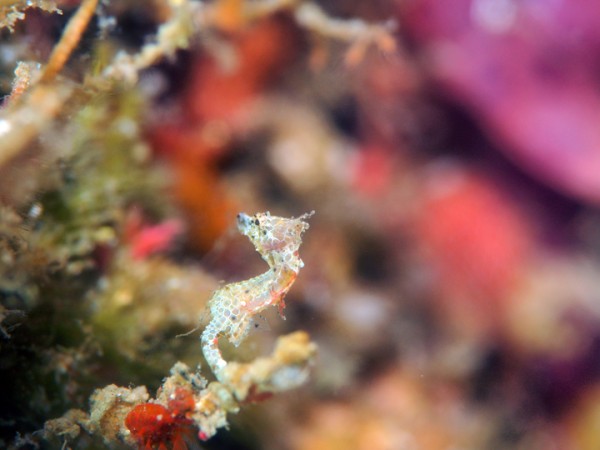 生き物はオオモンカエルアンコウ、イロカエルアンコウ、ベニカエルアンコウ、ハナオコゼ、ハチジョウタツ、オオウミウマ、ウミテング、カミソリウオ、チンアナゴ、クダゴンベ、ムラモミジハナダイ、ネジリンボウ、ヒレナガネジリンボウ、ミホノハゴロモハゼ、ミジンベニハゼ、ボブサンウミウシ、ミアミラウミウシ、クサモチアメフラシ、オセザキホクヨウウミウシ、トガリモエビ、ウズラカクレモエビ、アザミカクレモエビ等の確認と情報がありました。