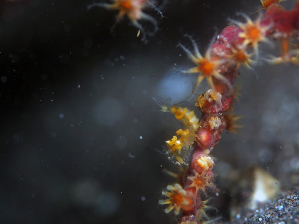 生物はオオモンカエルアンコウ、ベニカエルアンコウ、ヒレナガネジリンボウ、ネジリンボウ、ハタタテハゼ、オキナワベニハゼ、ヤツシハゼ、ハチマキダテハゼ、アワイロコバンハゼ、コバンハゼ、クダゴンベ、ニシキフウライウオ、カミソリウオ、ムラモミジハナダイ、スミレナガハナダイ、オドリカクレエビ、エボシカクレエビ、イソギンチャクエビ、フィコカリス・シムランス、イソコンペイトウガニ等確認と情報がありました。