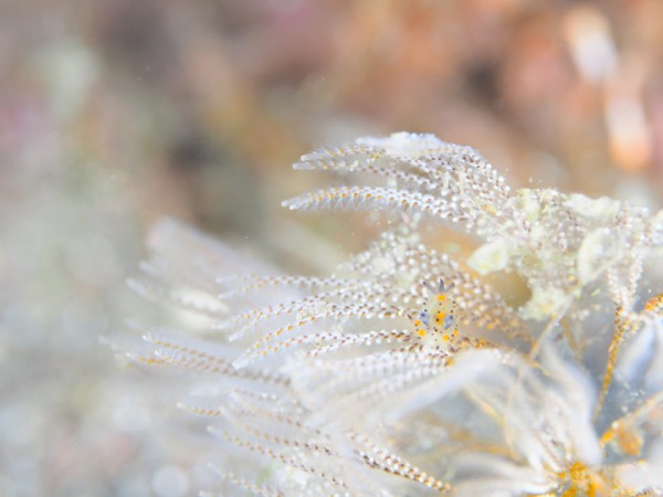 生き物はクマドリカエルアンコウ、オオモンカエルアンコウ、イロカエルアンコウ、ベニカエルアンコウ、カエルアンコウ、ニシキフウライウオ、ハチジョウタツ、オオウミウマ、ミジンベニハゼ、ツバメクサハゼ、ヒレナガハゼ、フタイロハナゴイ、ベニハナダイ、ツノカサゴ、アゴアマダイsp、ニゲミズチンアナゴ、ホタテエソ、ホカケトラギス、カスザメ、ツノザヤウミウシ、カンナツノザヤウミウシ、ウデフリツノザヤウミウシ、フジタウミウシsp、オドリカクレエビ、ハクセンアカホシカクレエビ、トガリモエビ、アヤトリカクレエビ、ホヤカクレエビ、ウミウシカクレエビ、フィコカリス・シムランス等の確認と情報がありました。