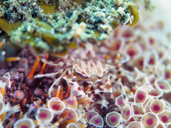 生物はキアンコウ、イロカエルアンコウ、オオモンカエルアンコウ、ベニカエルアンコウ、ヒレナガネジリンボウ、ネジリンボウ、ヒレナガハゼ、ツバメクサハゼ、オキナワベニハゼ、ニゲミズチンアナゴ、フタイロハナゴイ、スミレナガハナダイ、ベニハナダイ、ケラマハナダイ、タテジマヤッコ、レンテンヤッコ、クダゴンベ、ハワイトラギス、ハチジョウタツ、オオウミウマ、カンナツノザヤウミウシ、ウデフリツノザヤウミウシ、フジタウミウシ属の一種、オオアリモウミウシ、ヒメクロモウミウシ、ノトアリモウミウシ、フィコカリス・シムランス、トガリモエビ、サガミツノメエビ、アヤトリカクレエビ、アカゲカムリ、イソコンペウガニ、ゼブラガニ等確認と情報がありました。