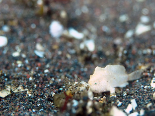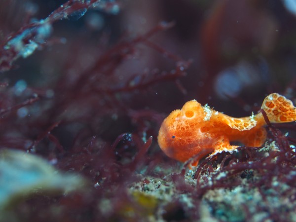 生物はカエルアンコウ、ヒメヒラタカエルアンコウ、イロカエルアンコウ、オオモンカエルアンコウ、ベニカエルアンコウ、ヒレナガネジリンボウ、ツバメクサハゼ、ヒレナガハゼ、アナハゼ、ニゲミズチンアナゴ、インドアカタチ幼魚、ホウボウ幼魚、ヒレナガカサゴ幼魚、ウサギトラギス、ホカケトラギス、ホタテエソ、アゴアマダイ属の一種、ウデフリツノザヤウミウシ、カンナツノザヤウミウシ、ツノザヤウミウシ、フジタウミウシ属の一種、トガリモエビ、アヤトリカクレエビ、フィコカリス・シムランス等確認と情報がありました。