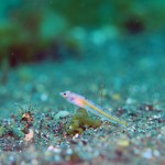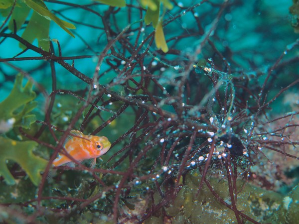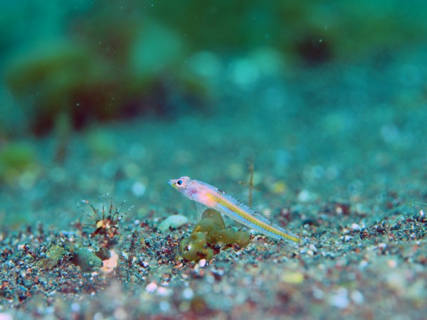 生き物はオオモンカエルアンコウ、イロカエルアンコウ、ベニカエルアンコウ、カエルアンコウ、ミジンベニハゼ、ツバメクサハゼ、ドロメ幼魚、ハチジョウタツ、アカイサキ、フタイロハナゴイ、インドアカタチ幼魚×3、スミツキアカタチ、アゴアマダイsp×4、ヒレナガカサゴ、ホタテエソ、ホカケトラギス、ウサギトラギス、ツノザヤウミウシ、カンナツノザヤウミウシ、フジタウミウシsp、トガリモエビ、ハクセンアカホシカクレエビ、オドリカクレエビ、フィコカリス・シムランス等の確認と情報がありました。