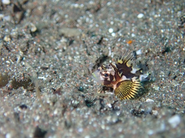 生き物はオオモンカエルアンコウ、イロカエルアンコウ、ベニカエルアンコウ、カエルアンコウ、ミジンベニハゼ、ツバメクサハゼ、ドロメ幼魚、ハチジョウタツ、フタイロハナゴイ、インドアカタチ幼魚、スミツキアカタチ、アゴアマダイ、ヒレナガカサゴ、ホタテエソ、ホカケトラギス、ウサギトラギス、ツノザヤウミウシ、カンナツノザヤウミウシ、フジタウミウシsp、トガリモエビ、ハクセンアカホシカクレエビ、オドリカクレエビ、フィコカリス・シムランス等の確認と情報がありました。