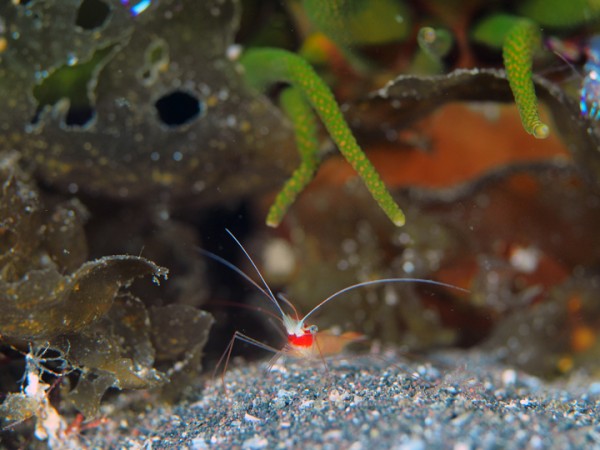 生物はイロカエルアンコウ、オオモンカエルアンコウ、ベニカエルアンコウ、カエルアンコウ、ヒレナガネジリンボウ、ネジリンボウ、ヒレナガハゼ、ツバメクサハゼ、ウサギトラギス、ホカケトラギス、ホタテエソ、ヒレナガカサゴ幼魚、メイタガレイ幼魚、ホウボウ幼魚、クダゴンベ、スミツキハナダイ幼魚、アカイサキ幼魚、メキシクロミス・マクロパス、ボブサンウミウシ、ウデフリツノザヤウミウシ、オセミズタマウミウシ、ツノザヤウミウシ、フジタウミウシ属の一種、ミヤコウミウシ、トガリモエビ、エリマキエビ、ハクセンアカホシカクレエビ、エボシカクレエビ等確認と情報がありました。