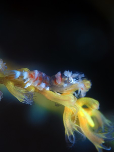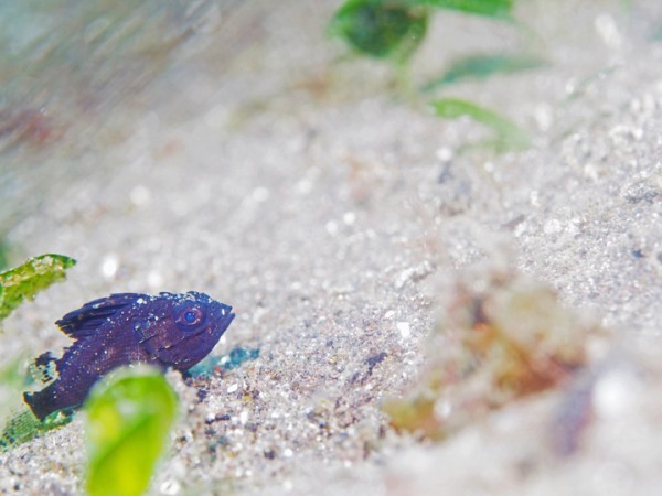 生き物はオオモンカエルアンコウ、イロカエルアンコウ、ベニカエルアンコウ、カエルアンコウ、ウミテング、ミジンベニハゼ、ネジリンボウ、ヒレナガネジリンボウ、ヒレナガハゼ、ヒレナガカサゴ、ウサギトラギス、ホカケトラギス、インドアカタチ、スミツキアカタチ、カスザメ、ツノザヤウミウシ、ウデフリツノザヤウミウシ、クチナシツノザヤウミウシ、メキシクロミス・マクロパス、トガリモエビ、エボシカクレエビsp、ヨコシマエビ、トサカクレエビ、ハクセンアカホシカクレエビ等の確認と情報がありました。