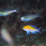 生き物はオオモンカエルアンコウ、ベニカエルアンコウ、ミジンベニハゼ、ネジリンボウ、ヒレナガネジリンボウ、ハチジョウタツ、タカクラタツ、イバラタツ、フタイロハナゴイ、チンアナゴ、ニゲミズチンアナゴ、クマノミ幼魚、コロダイ幼魚、ケサカケベラ幼魚、ナギサノツユ、フリソデミドリガイ、トガリモエビ等の確認と情報がありました。