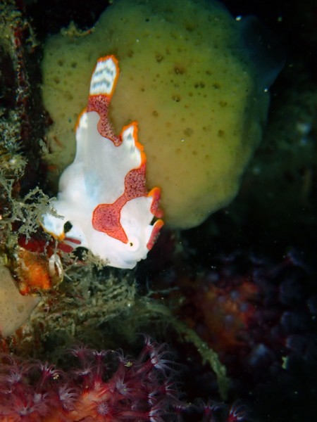 生物はクマドリカエルアンコウ、オオモンカエルアンコウ、ヒレナガネジリンボウ、ネジリンボウ、ハタタテハゼ、ホタルビオニハゼ、スジクロユリハゼ、ヒレグロスズメダイ、デルタスズメダイ、シテンヤッコ幼魚、オオウミウマ、ハチジョウタツ、テングノオトシゴ、ニシキフウライウオ、カミソリウオ、ミナミハナダイ、ホカケハナダイ幼魚、アゴアマダイ属の一種、ニゲミズチンアナゴ、チンアナゴ、ウデフリツノザヤウミウシ、ツノザヤウミウシ、オセミズタマウミウシ、ミチヨミノウミウシ、コソデウミウシ、アザミカクレモエビ、ウズラカクレモエビ、フィコカリス・シムランス、ウミウシカクレエビ、アヤトリカクレエビ、エボシカクレエビ、オドリカクレエビ等確認と情報がありました。