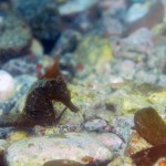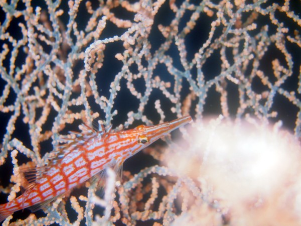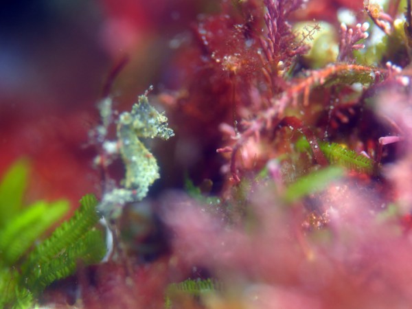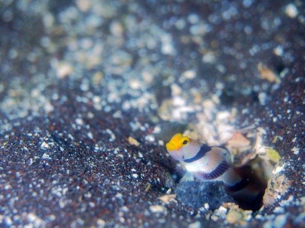生き物はクマドリカエルアンコウ、オオモンカエルアンコウ、ニシキフウライウオ、カミソリウオ、ホソフウライウオ、ウミテング、テングノオトシゴ、オオウミウマ、ハチジョウタツ、チンアナゴ、ニゲミズチンアナゴ、ネジリンボウ、ヒレナガネジリンボウ、クビアカハゼ、ダンダラダテハゼ、クダゴンベ、ヒレグロスズメダイ、ソメワケヤッコ、ウデフリツノザヤウミウシ、カンナツノザヤウミウシ、ツノザヤウミウシ、オドリカクレエビ、キサンゴカクレエビ、ウミウシカクレエビ、フィコカリス・シムランス等の確認と情報がありました。