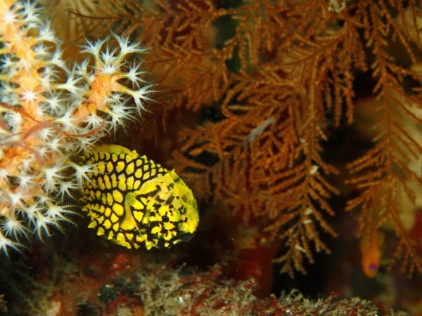 生き物はオオモンカエルアンコウ、ニシキフウライウオ、カミソリウオ、ハチジョウタツ、タカクラタツ、ウミテング、テングノオトシゴ、ネジリンボウ、ヒレナガネジリンボウ、ヒレグロスズメダイ、クダゴンベ、ウデフリツノザヤウミウシ、ツノザヤウミウシ、カンナツノザヤウミウシ、オセミズタマウミウシ、クロスジリュウグウウミウシ、トサカリュウグウウミウシ、オドリカクレエビ、キサンゴカクレエビ、キミシグレカクレエビ、ウミウシカクレエビ、ウズラカクレモエビ、フィコカリス・シムランス等の確認と情報がありました。