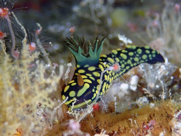 生物はクマドリカエルアンコウ、オオモンカエルアンコウ、ヒレナガネジリンボウ、ネジリンボウ、ハチマキダテハゼ、ホタルビオニハゼ、ニシキフウライウオ、ホソフウライウオ、カミソリウオ、オオウミウマ、ハチジョウタツ、テングノオトシゴ、ミナミハナダイ、ホカケハナダイ幼魚、カスザメ、ゴマフビロードウミウシ、カンナツノザヤウミウシ、ツノザヤウミウシ、サガミリュウグウウミウシ、トサカリュウグウウミウシ、フィコカリス・シムランス、オドリカクレエビ、エボシカクレエビ等確認と情報がありました。