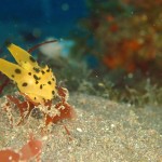 生き物はイロカエルアンコウ、オオモンカエルアンコウ、ニシキフウライウオ、カミソリウオ、ウミテング、テングノオトシゴ、ハチジョウタツ、イバラタツ、ミジンベニハゼ、ネジリンボウ、ヒレナガネジリンボウ、フタスジリュウキュウスズメダイ、ヒレグロスズメダイ、イッテンアカタチ、ツノザヤウミウシ、カンナツノザヤウミウシ、オドリカクレエビ、サガミツノメエビ、キサンゴカクレエビ、キミシグレカクレエビ、ヨコシマエビ、トガリモエビ、カイカムリ等の確認と情報がありました。