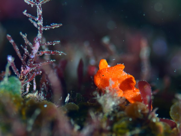 生物はオオモンカエルアンコウ、イロカエルアンコウ、ヒレナガネジリンボウ、ネジリンボウ、ミジンベニハゼ、ミゴノハゴロモハゼ、シュンカンハゼ、ニシキフウライウオ、カミソリウオ、ホカケハナダイ、ミナミハナダイ、イッテンアカタチ、ニゲミズチンアナゴ、チンアナゴ、ハチジョウタツ、オオウミウマ、タカクラタツ、イバラタツ幼魚、カンナツノザヤウミウシ、サガミリュウグウウミウシ、ユウグレイロウミウシ、クロコソデウミウシ、ウデフリツノザヤウミウシ、フィコカリス・シムランス、エボシカクレエビ、トサカクレエビ等確認と情報がありました。