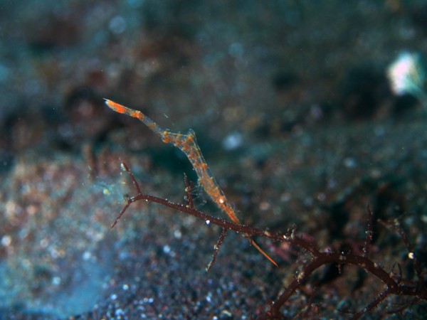 生き物はオオモンカエルアンコウ、イロカエルアンコウ、ニシキフウライウオ、カミソリウオ、ウミテング、テングノオトシゴ、ハチジョウタツ、イバラタツ、タカクラタツ、オオウミウマ、ネジリンボウ、ヒレナガネジリンボウ、ミジンベニハゼ、マツカサウオ、イッテンアカタチ、ツノザヤウミウシ、カンナツノザヤウミウシ、オドリカクレエビ、エボシカクレエビ、キサンゴカクレエビ、トガリモエビ、フィコカリス・シムランス等の確認と情報がありました。
