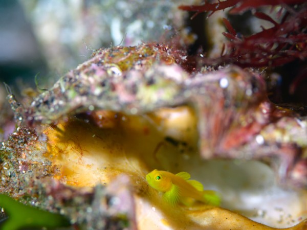 生物はアオウミガメ、オオモンカエルアンコウ、イロカエルアンコウ、ヒレナガネジリンボウ、ネジリンボウ、ミジンベニハゼ、ミホノハゴロモハゼ、シュンカンハゼ、ニシキフウライウオ、カミソリウオ、タカクラタツ、オオウミウマ、ハチジョウタツ、ニゲミズチンアナゴ、カンナツノザヤウミウシ、ツノザヤウミウシ、ヤマトユビウミウシ、コナフキウミウシ、エボシカクレエビ、ビシャモンエビ、アヤトリカクレエビ、オドリカクレエビ、トサカクレエビ、カイカムリ等確認と情報がありました。