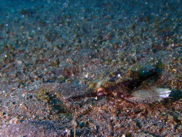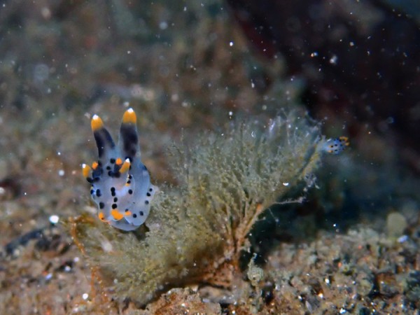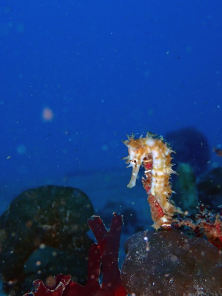 生物はキアンコウ、エナガカエルアンコウ、オオモンカエルアンコウ、イロカエルアンコウ、ミジンベニハゼ、ヒレナガネジリンボウ、ネジリンボウ、ニシキフウライウオ、アゴアマダイ属の一種、テングノオトシゴ、ウミテング、タカクラタツ、イバラタツ、カンナツノザヤウミウシ、ツノザヤウミウシ、エボシカクレエビ、キサンゴカクレエビ、オドリカクレエビ、トサカクレエビ等確認と情報がありました。