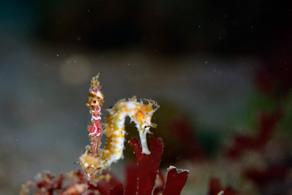 生物はキアンコウ、エナガカエルアンコウ、オオモンカエルアンコウ、イロカエルアンコウ、ヒレナガネジリンボウ、ネジリンボウ、ミジンベニハゼ、ミホノハゴロモハゼ、テングノオトシゴ、ウミテング、タカクラタツ、オオウミウマ、イバラタツ、カンナツノザヤウミウシ、ツノザヤウミウシ、フジエラミノウミウシ属の一種、エボシカクレエビ、オドリカクレエビ、キサンゴカクレエビ、トサカクレエビ等確認と情報がありました。