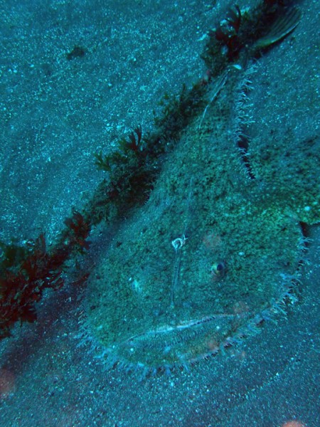こんにちは、まいです!今日の天気は晴れ。風は北東のち南西の風が微風程度で、外海は昨日の風の影響で潜水禁止としました。水温は13~15℃、透視度は8~12mと良好です。本日もキアンコウは2個体確認出来ました。居続けてくれるといいですね。