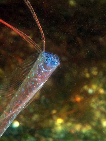 今日の天候は曇りのち晴れ。風は終日東寄りの風でした。水温は15~16℃、透視度は8~15mで良好でした。今日は湾内でリュウグウノツカイやテンガイハタ、キアンコウ幼魚多数、カガミダイ等観察できました~