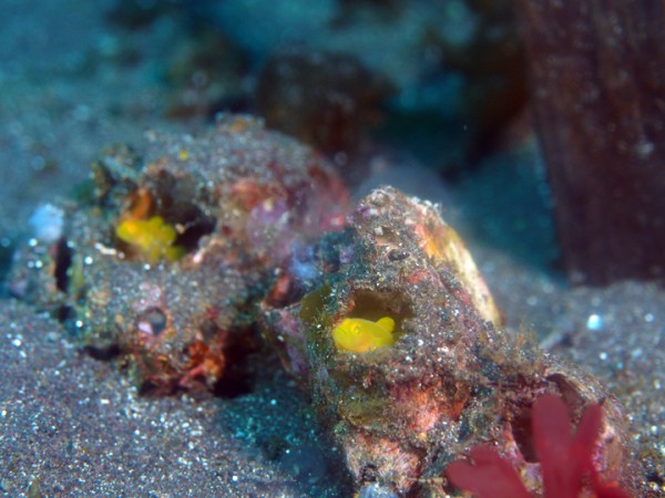 他生き物はオオモンカエルアンコウ、ベニカエルアンコウ、カエルアンコウ、ウミテング、テングノオトシゴ、ハチジョウタツ、タカクラタツ、ミジンベニハゼ、エボシカサゴ、イッテンアカタチ、スミツキアカタチ、インドアカタチ、ホウボウ幼魚、ツノザヤウミウシ、カンナツノザヤウミウシ、オオアリモウミウシ、オドリカクレエビ、キサンゴカクレエビ、ヨコシマエビ、トガリモエビ等の確認と情報がありました。