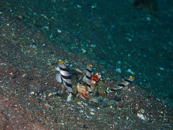 生物はクマドリカエルアンコウ、オオモンカエルアンコウ、ヒレナガネジリンボウ、ヒメオニハゼ、ホタルビオニハゼ、ヒレグロスズメダイ、イチモンスズメダイ、オジロスズメダイ、ニシキフウライウオ、ニゲミズチンアナゴ、チンアナゴ、ウデフリツノザヤウミウシ、セトリュウグウウミウシ、フィコリス・シムランス、ウミウシカクレエビ、エボシカクレエビ、イボイソバナガニ、トガリモエビ等確認と情報がありました。