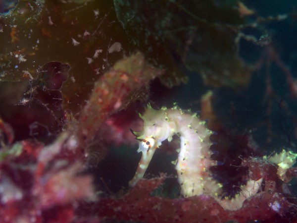 生物はイロカエルアンコウ、オオモンカエルアンコウ、ベニカエルアンコウ、ヒレナガネジリンボウ、ネジリンボウ、ミジンベニハゼ、オキナワベニハゼ、コロダイ幼魚、ハチジョウタツ、イバラタツ、タカクラタツ、フタイロハナゴイ、タマミルウミウシ、フリソデミドリガイ、ナギサノツユ、アカホシカクレエビ、トサカクレエビ、オドリカクレエビ等確認と情報がありました。
