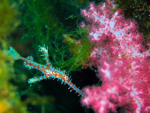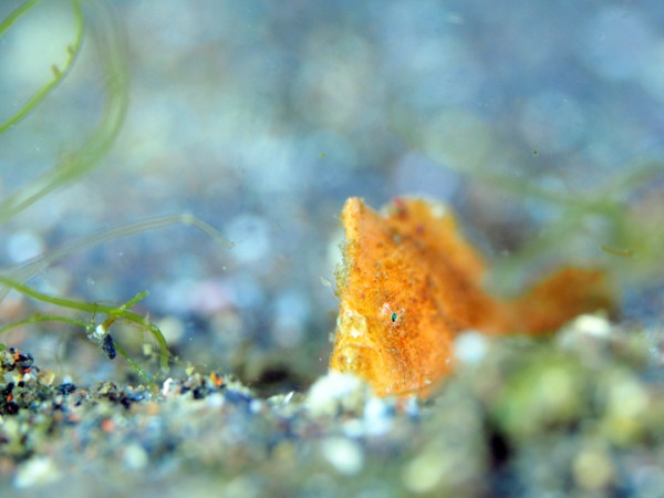 生き物はヒメヒラタカエルアンコウ、エナガカエルアンコウ、オオモンカエルアンコウ、イロカエルアンコウ、ベニカエルアンコウ、ニシキフウライウオ、カミソリウオ、オオウミウマ、ハチジョウタツ、ミジンベニハゼ、ヒレナガハゼ、ツバメクサハゼ、フトスジイレズミハゼ、シュンカンハゼ、フタイロハナゴイ、スミツキハナダイ、ツノカサゴ、ニゲミズチンアナゴ、アゴアマダイsp×3、キツネベラ、クジャクベラ、ツノザヤウミウシ、カンナツノザヤウミウシ、ウデフリツノザヤウミウシ、インターネットウミウシ、フジタウミウシsp、オオアリモウミウシ、トガリモエビ、ハクセンアカホシカクレエビ、オドリカクレエビ、フィコカリス・シムランス等の確認と情報がありました。