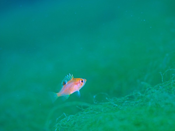 今日の天候は晴れ。風は午後から南西の風が強く吹き、外海は午後から潜水禁止としました。水温は15~16℃、透視度は白濁感が強くなり5~12m程でした。