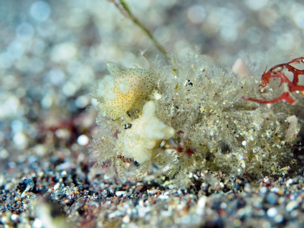生き物はオオモンカエルアンコウ、イロカエルアンコウ、ベニカエルアンコウ、カエルアンコウ、ハチジョウタツ、オオウミウマ、ウミテング、ミジンベニハゼ、ツバメクサハゼ、ヒレナガカサゴ、ホタテエソ、メイタガレイ幼魚、アゴアマダイsp、インドアカタチ、スミツキアカタチ、ツノザヤウミウシ、ウデフリツノザヤウミウシ、オセミズタマウミウシ、トガリモエビ、ハクセンアカホシカクレエビ、アヤトリカクレエビ、フィコカリス・シムランス、ホヤカクレエビsp、シノノメスベスベオトヒメエビ等の確認と情報がありました。